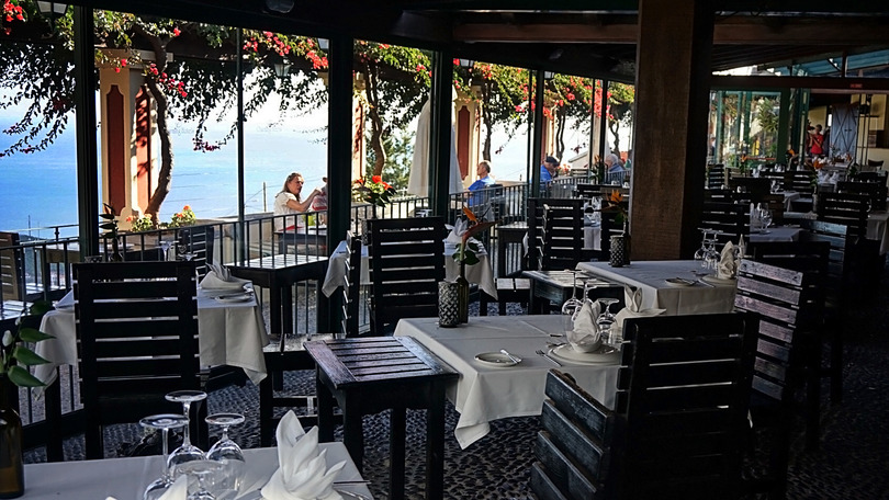At the top of another hill, we had a wine tasting with local homemade bread and cheese. Sitting outside we admired the views toward the sea and of the restaurant itself.